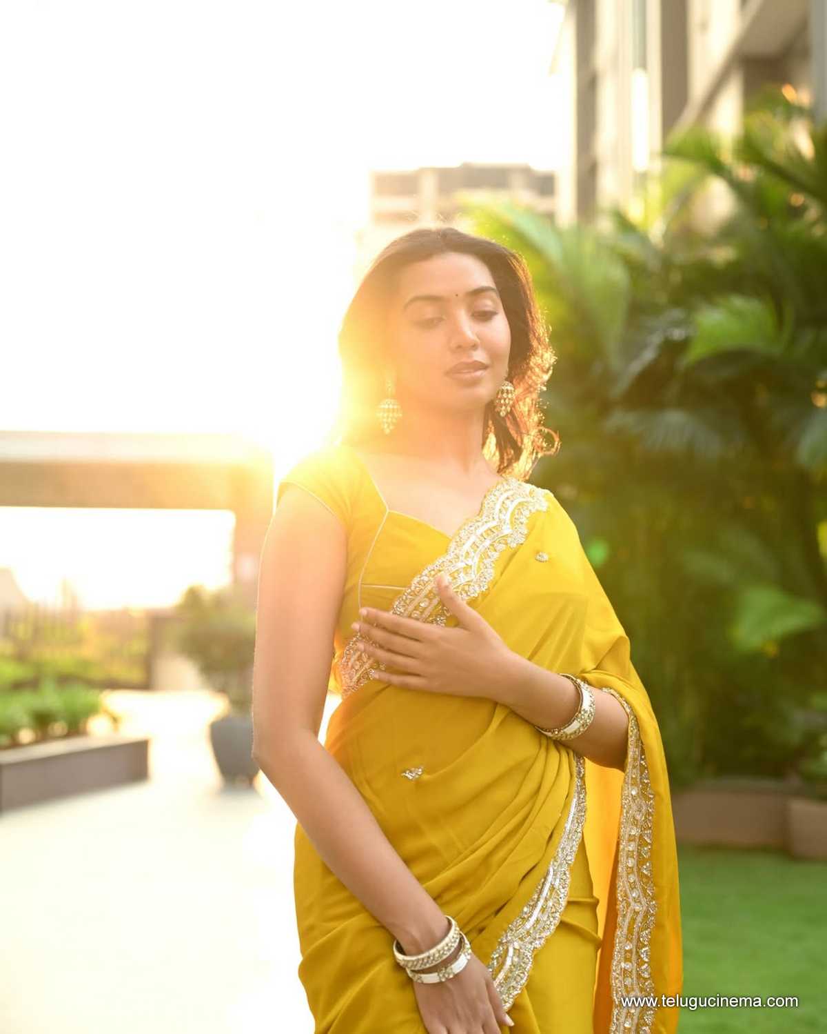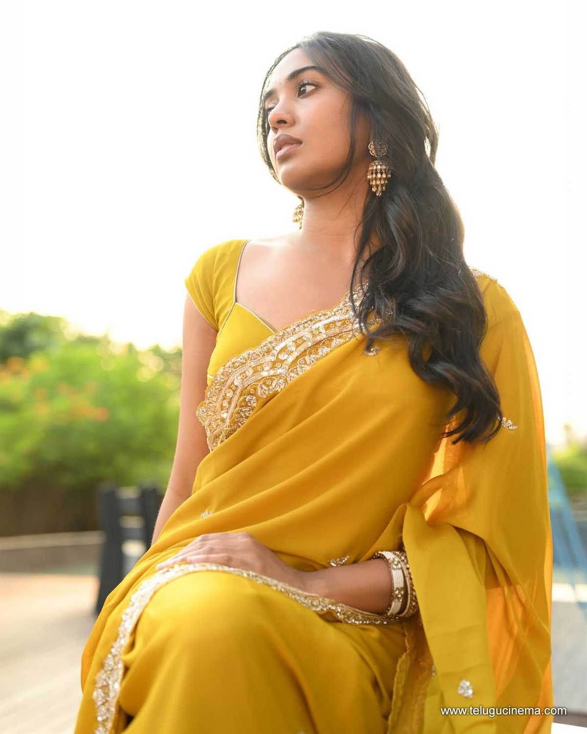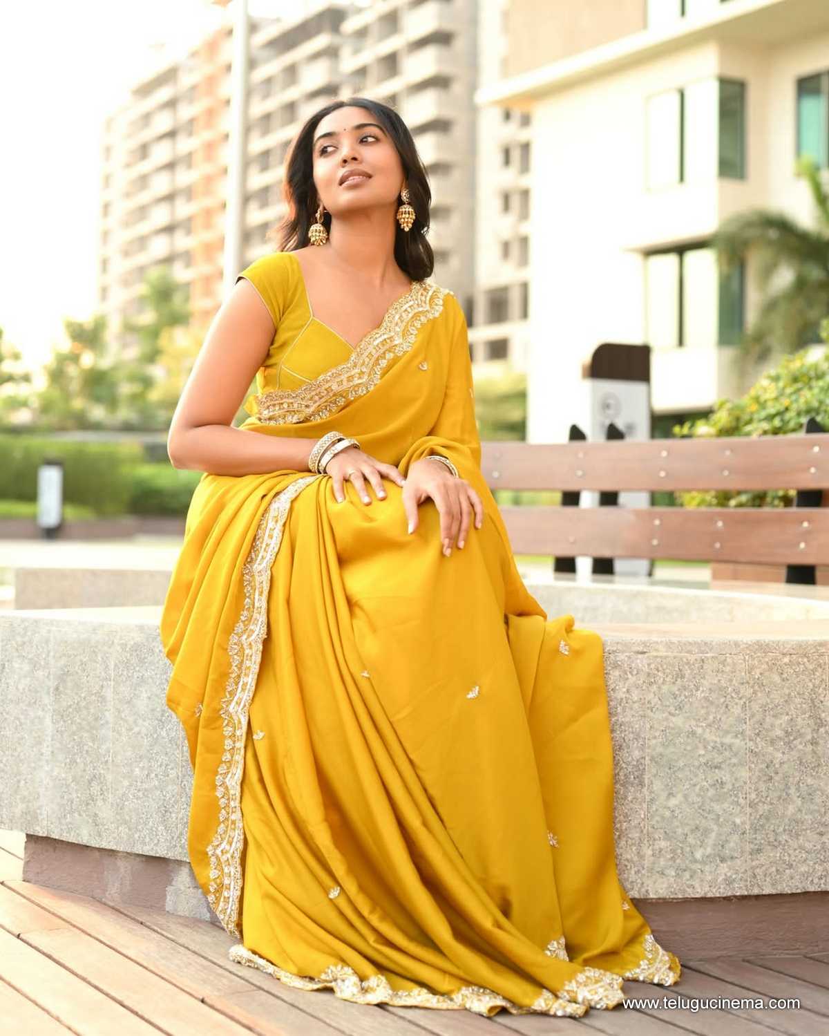 Shivathmika in a brown Saree