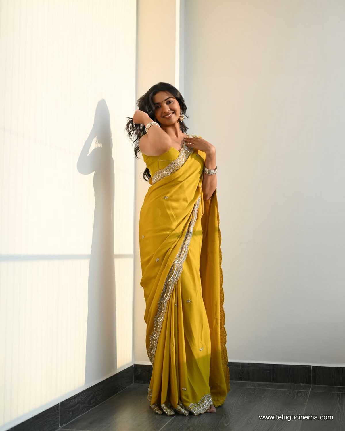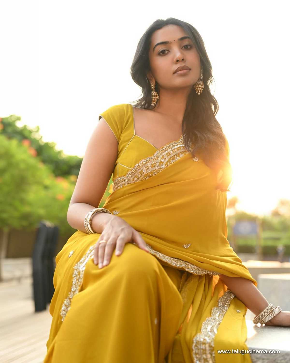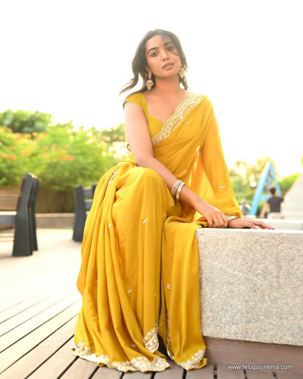 Shivathmika in a brown Saree