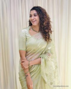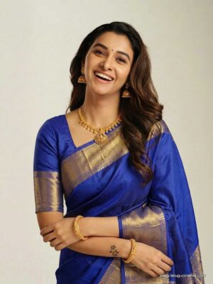 Priya Bhavani Shankar in a blue silk Saree